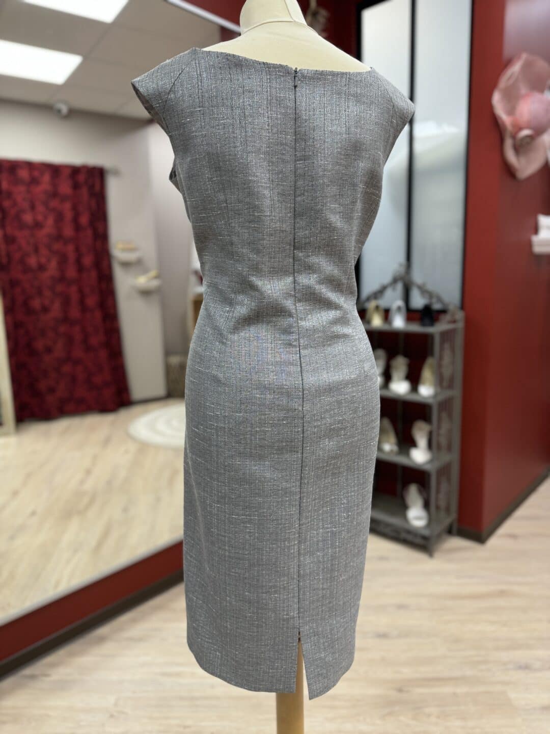L’ensemble gris est polyvalent, adapté à diverses occasions, que ce soit une soirée cocktail, un événement professionnel ou une célébration formelle. La combinaison du manteau à motifs et de la robe cintrée offre une élégance sans effort qui vous démarquera avec classe.